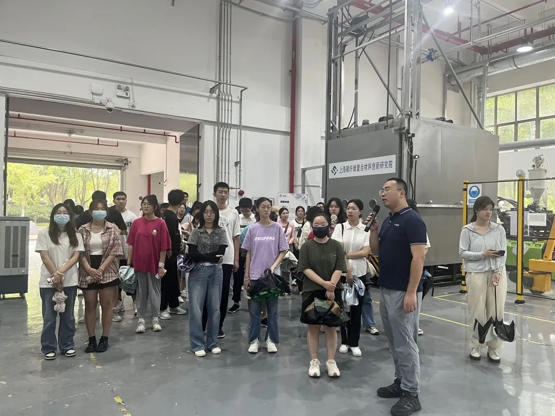 大学生们在研究院创新实验室学习了解我国碳纤维复合材料区域发展情况,上海市及金山区碳纤维复合材料创新链、产业链优势,以及一滴石油如何成长为轻量化之王的碳纤维复合材料等知识。