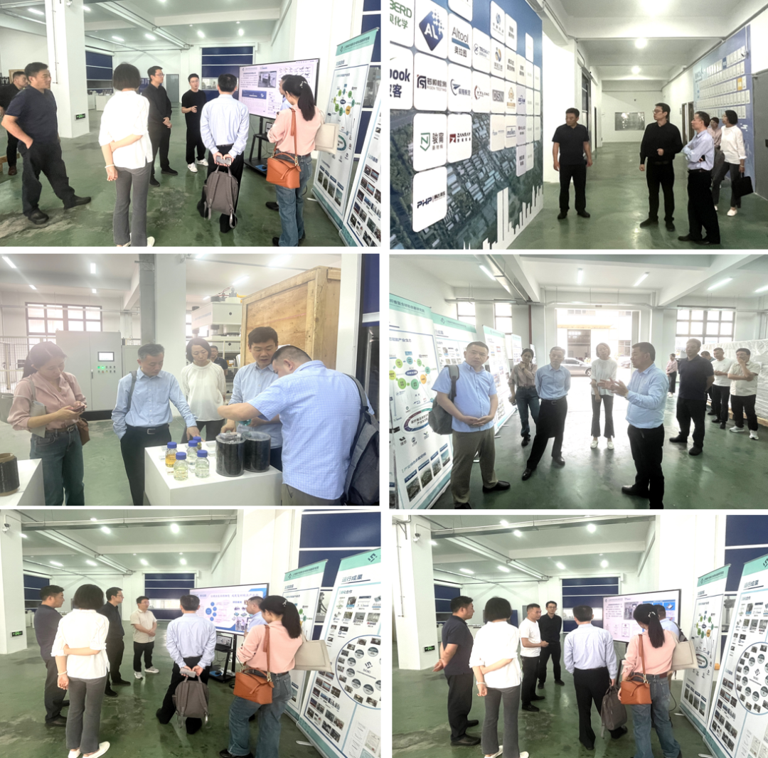在调研现场,研究院孵化合作企业库贝化学就耐高温与可回收树脂关键技术,波客复材就材料数据云平台及AI智能化技术,若顺检测就复合材料结构检测技术,新旺科技就复合材料结构成型辅助技术,奥拉图就复合材料高温成型模具技术,辰娅航空就复合材料零件精密加工技术等相关情况进行了汇报。
