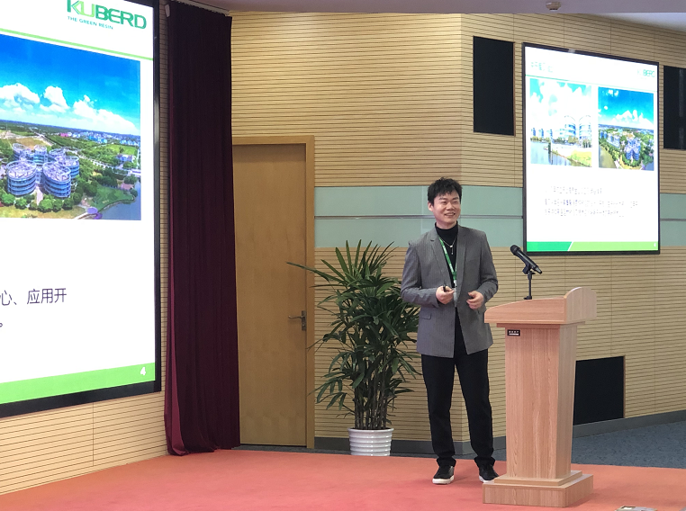 刘章友介绍了库贝化学的核心产品聚硅氮烷树脂,以及该树脂作为一种新型耐高温树脂基体在冬奥火炬碳纤维复合材料结构中的成功应用案例。聚硅氮烷树脂是一种先进的陶瓷前驱体材料,具备制造耐高温碳纤维复合材料的良好潜力。刘章友表示,在研究院平台技术力量和研发资源的支持下,库贝化学成功开发了新一代聚硅氮烷树脂,解决了冬奥火炬碳纤维复合材料结构需要承受800℃以上火焰烘烤的苛刻使用瓶颈,实现了国内碳纤维增强树脂基复合材料在耐高温领域的应用突破。