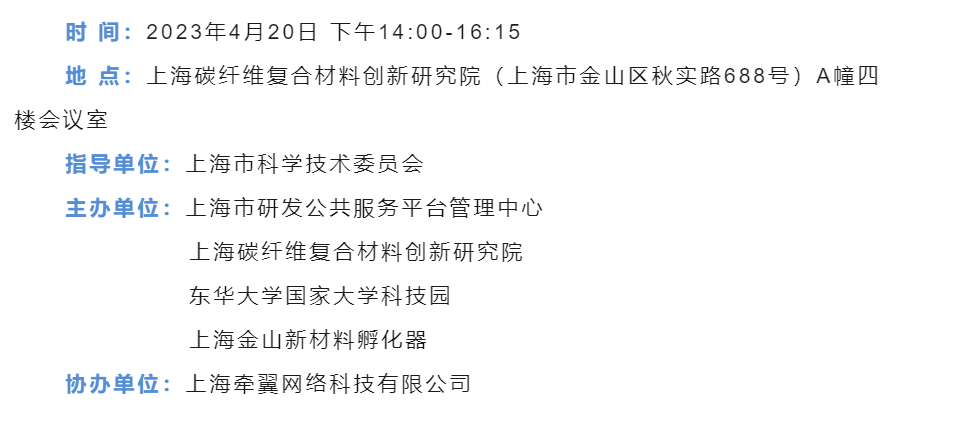 欢迎报名I 4月20日,研究院与上海市研发公共服务平台管理中心组织碳纤维复合材料创新应用研讨活动