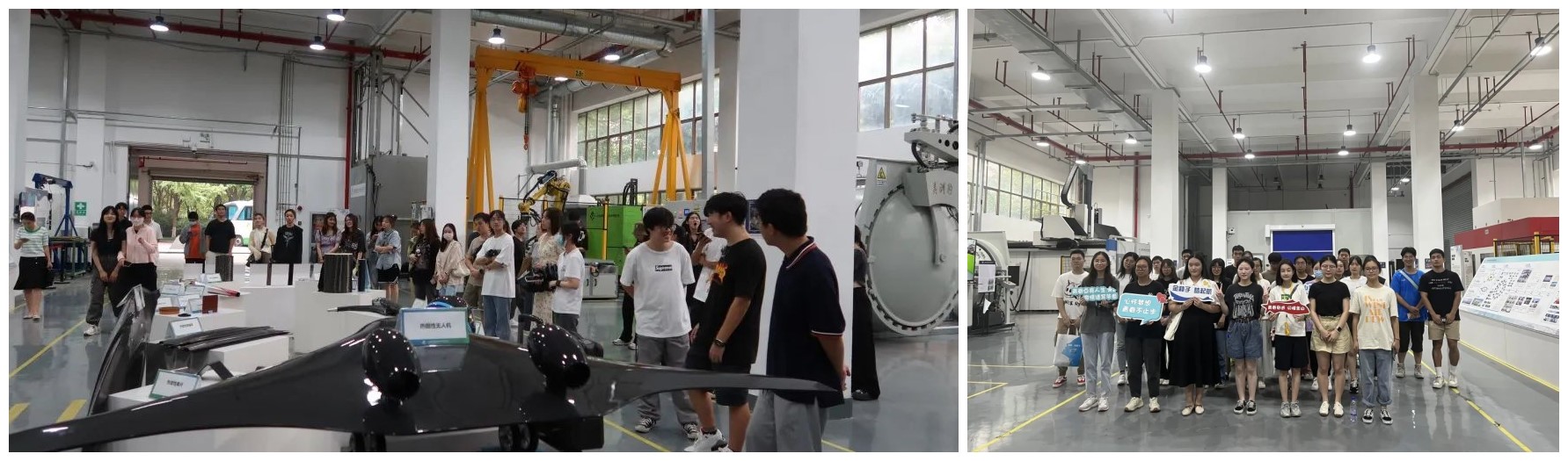 大学生们在研究院创新实验室学习了解我国碳纤维复合材料区域发展情况,上海市及金山区碳纤维复合材料创新链、产业链优势,以及一滴石油如何成长为轻量化之王的碳纤维复合材料等知识。