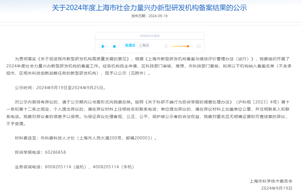 为进一步促进上海市新型研发机构高质量发展,更好地承担公共职能,上海市科委组织开展2024年新型研发机构备案工作,研究院申报的新材料领域市级新型研发机构进入公示名单。